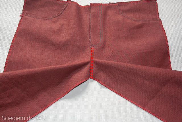 Do drugiego przodu doczepiamy patkę rozporka. Przyszywamy